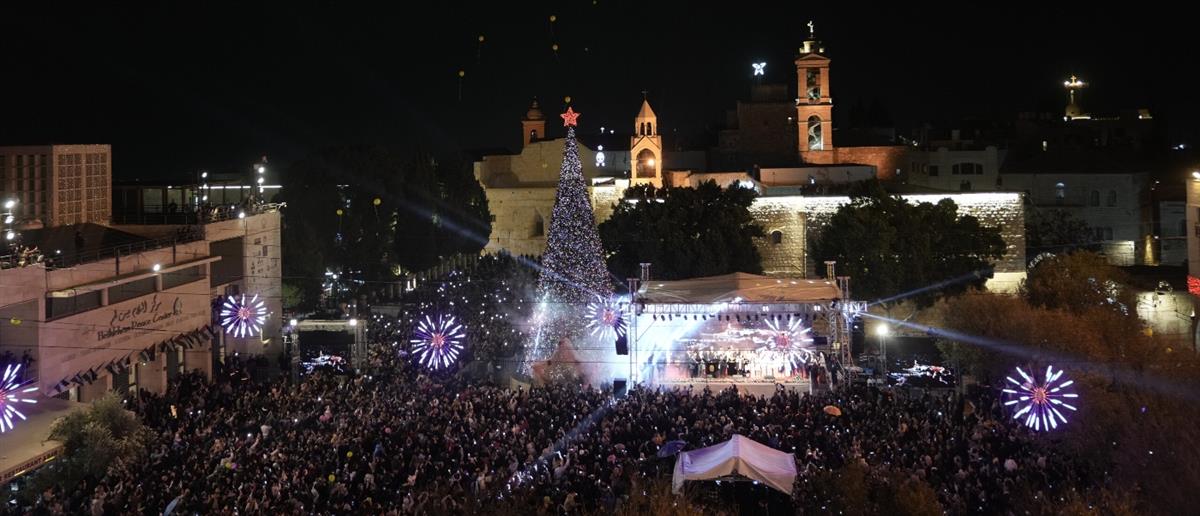 Μετά από δύο δύσκολα χρόνια πολέμου, την ώρα που η εκεχειρία, που πρόσφατα τέθηκε σε ισχύ τηρείται, η πόλη της Βηθλεέμ αποφάσισε ότι φέτος οι εορτασμοί θα διεξαχθούν κανονικά και μετά από δύο χρόνια γιορτάστηκα ξανά το άναμα του δέντρου μπροστά από την ιστορική εκκλησία της Γέννησης.