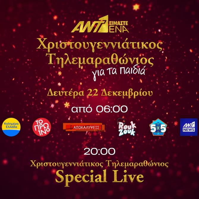 Τη Δευτέρα 22 Δεκεμβρίου το «5Χ5» με τον Θάνο Κιούση στηρίζει τον Χριστουγεννιάτικο Τηλεμαραθώνιο του ΑΝΤ1 για τα Παιδιά με ένα special εορταστικό επεισόδιο που έρχεται γεμάτο αγάπη και χαμόγελα να στηρίξει το έργο των κοινωνικών φορέων: Δεσμός, ΕΛΙΖΑ, Παιδικά Χωριά SOS, Φλόγα και Make-A-Wish.