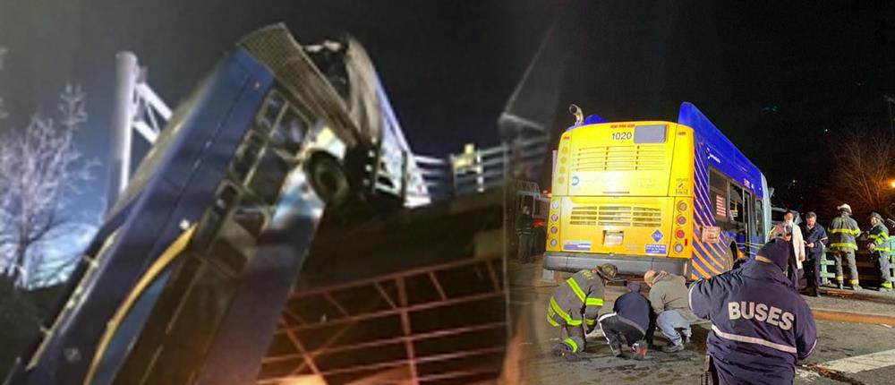 Ένα λεωφορείο στη Νέα Υόρκη βρέθηκε να κρέμεται από γέφυρα στο Μπρονξ, της Νέας Υόρκης, μετά από τροχαίο.