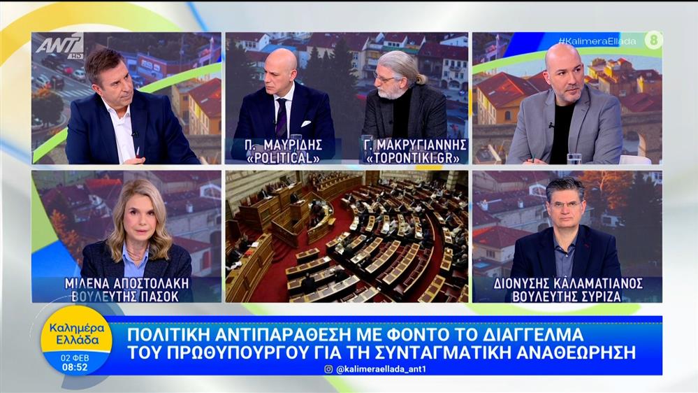 Πολιτική αντιπαράθεση με φόντο το διάγγελμα του Πρωθυπουργού για τη συνταγματική αναθεώρηση - Καλημέρα Ελλάδα - 02/02/2026