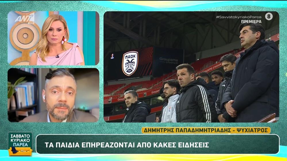 Δ. Παπαδημητριάδης: "Τα παιδιά επηρεάζονται από κακές ειδήσεις" - Σαββατοκύριακο Παρέα - 31/01/2026Ο Δημήτρης Παπαδημητριάδης, ψυχίατρος, μιλάει στο Σαββατοκύριακο Παρέα.