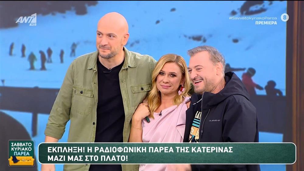 Η ραδιοφωνική παρέα της Κατερίνας Καραβάτου στο πλατό του Σαββατοκύριακο Παρέα.