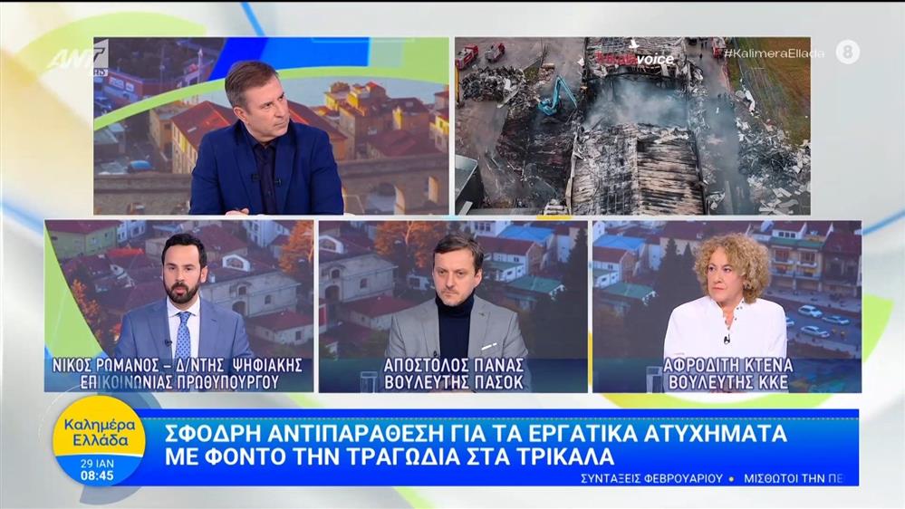 Σφοδρή αντιπαράθεση για τα εργατικά ατυχήματα με φόντο την τραγωδία στα Τρίκαλα - Καλημέρα Ελλάδα - 29/01/2026
