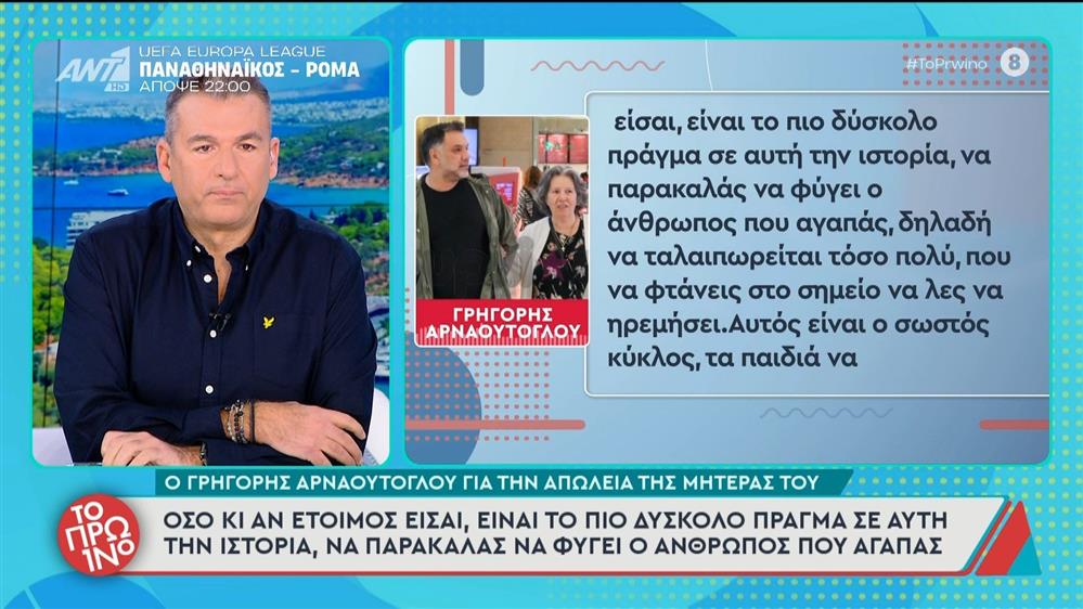 "Έφυγε" από τη ζωή η μητέρα του Γρηγόρη Αρναούτογλου - Το Πρωινό - 29/01/2026
